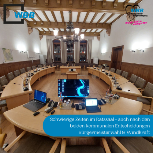 Für die WBB obendrein komfortabel war, dass wir nirgendwo „Aktien im Spiel“ hatten. Die Fraktion gab lediglich klare Empfehlungen zu den beiden örtlichen Entscheidungen ab. Unser über Jahre gewachsener politischer Kompass beim Zukunftsthema Windenergie sowie unsere personelle Empfehlung nach Feststehen des Kandidatenfeldes für die nächsten acht Jahre im Bürgermeisteramt wurden jeweils von rund 60 % der Wählerinnen und Wähler identisch gesehen und befürwortet.